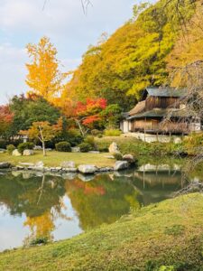 近水園(おみずえん)は、岡山県岡山市北区足守にある旧足守藩主・木下家の日本庭園で、岡山県では岡山市の後楽園、津山市の衆楽園と並ぶ大名庭園。 江戸時代の造園美と茶室建築が見られる貴重なスポット。 園内には池を中心とした回遊式庭園が広がり、季節ごとに変化する自然の表情が訪れる人々を魅了します。 特に春は桜、秋は紅葉の名所として知られ、庭園内に佇む「吟風閣(ぎんぷうかく)」とともに、歴史ある風景美が楽しめます。 静かで落ち着いた雰囲気の中、ゆっくりと歩きながら、江戸の趣を肌で感じられる癒しの空間です。 また、近くには足守の古い町並みや資料館もあり、周辺をあわせて散策すれば、かつての城下町の風情をより深く味わうことができます。