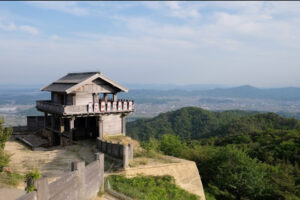 鬼ノ城(きのじょう)は、岡山県総社市奥坂に位置する、7世紀後半に築かれたとされる古代山城の史跡です。歴史書にはほとんど記録が残されておらず、その起源や目的には謎が多いものの、日本100名城にも選ばれている貴重な防御施設です。 山頂には復元された西門や角楼があり、これらは展望スポットとしても高い人気を誇ります。眼下には総社平野や岡山市街が広がり、天候に恵まれれば瀬戸内海や四国の山々まで一望できる絶景が楽しめます。特に角楼から眺める朝焼けや夕焼けは、昔話「桃太郎伝説」の舞台を思わせる幻想的な風景として、多くの人を魅了しています。 山道はよく整備されており、西門までは徒歩で約15分。城壁沿いには周遊コースも設けられており、約30分から2時間ほどでゆっくりと散策することができます。訪れる際は、歩きやすい靴での登城がおすすめです。