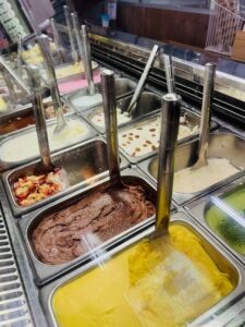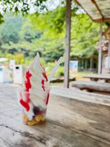 スイーツコーナーでは、牧場自慢の低温殺菌牛乳を使ったジェラートやソフトクリームが人気。季節ごとに岡山県産の清水白桃や足守メロン、ピオーネなどを使った限定フレーバーも登場し、何度訪れても新しい味に出会えます。